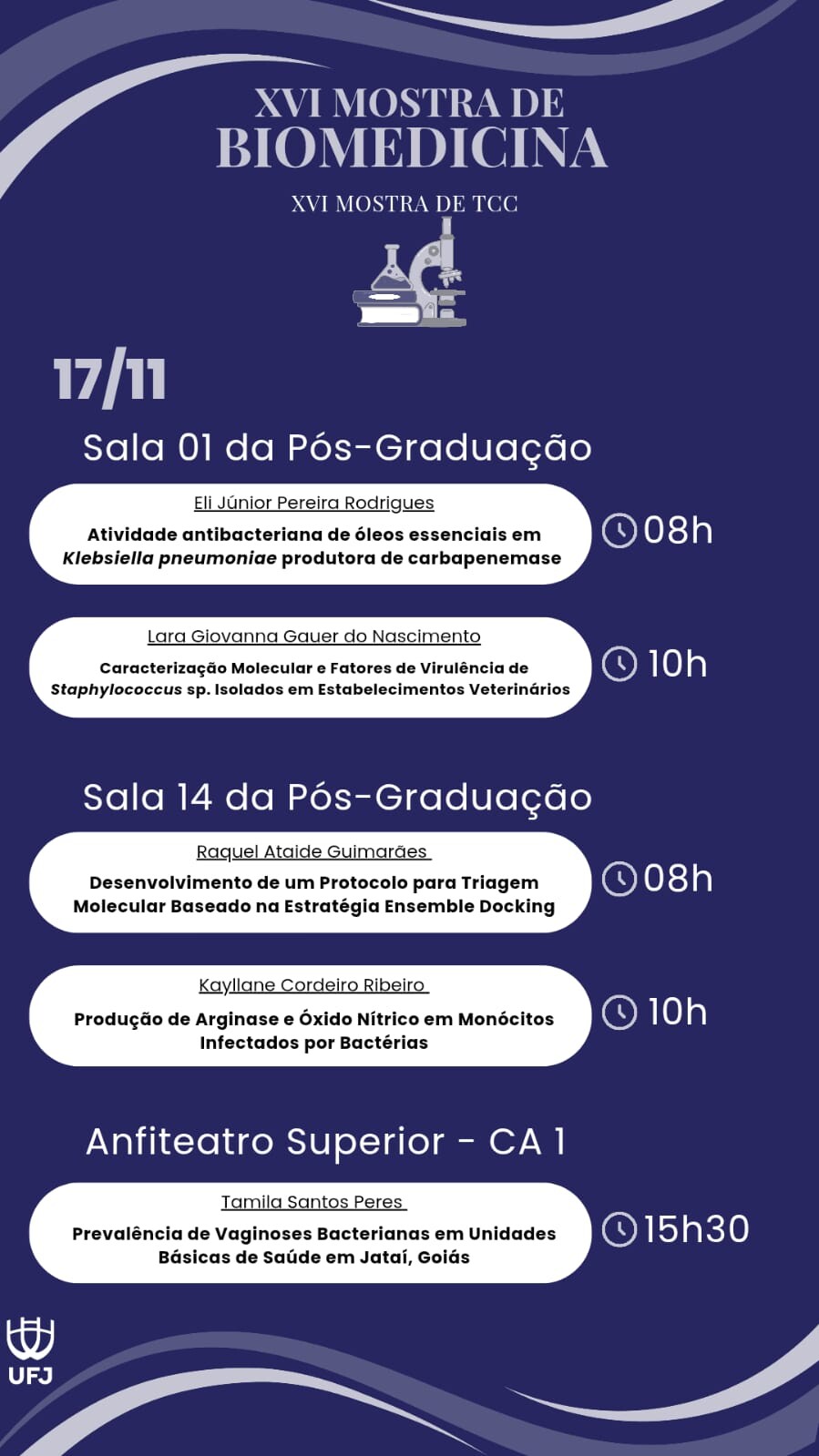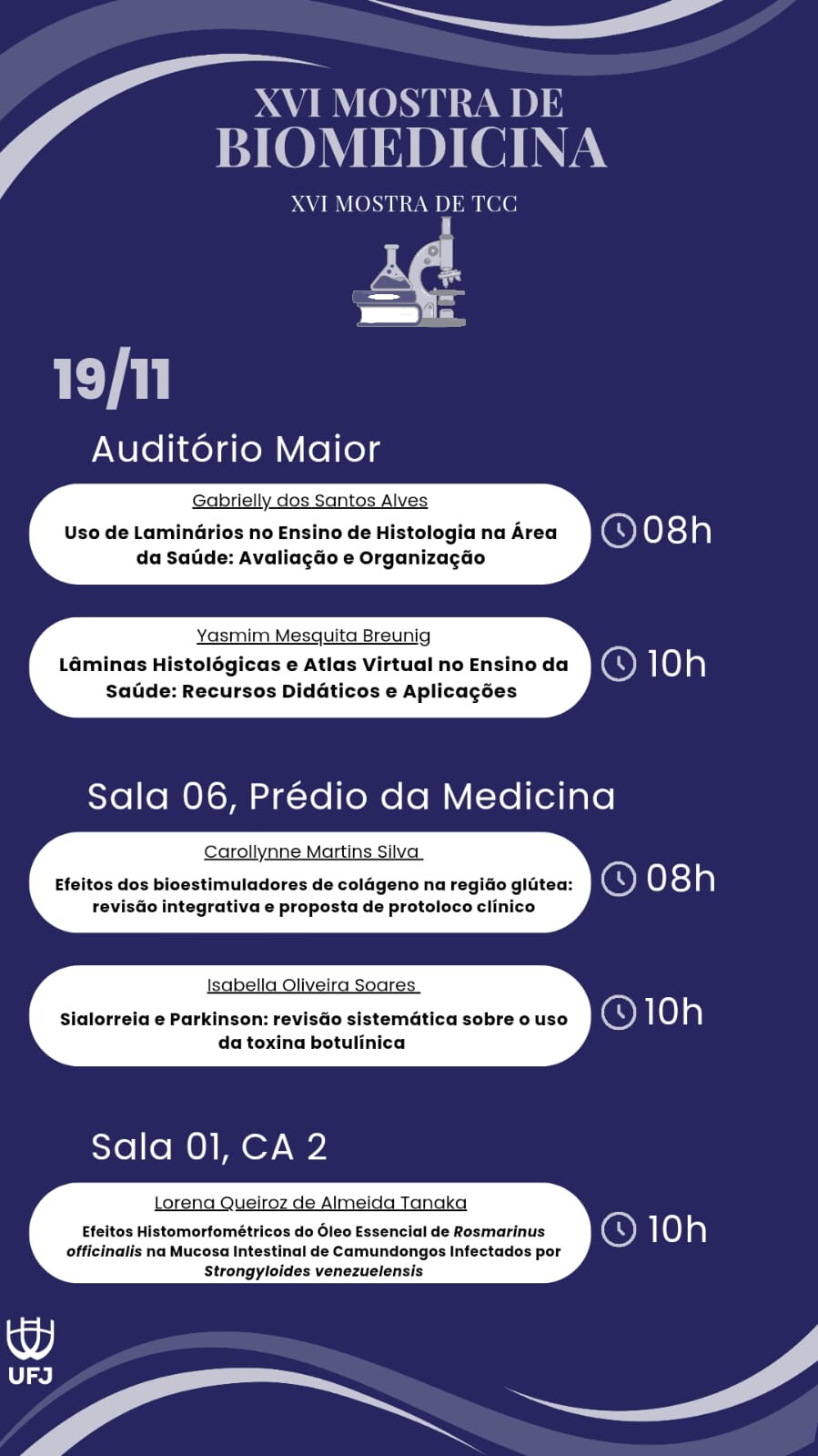 Não percam os Trabalhos finais de curso do(a)s aluno(a)s do curso de Biomedicina da UFJ!